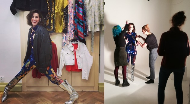 Původně jsem vybírala casual věci, ale pak jsem přišla za Luckou Kutálkovou z LEEDA a vše bylo jinak. Ona sice na svém webu nabízí jednoduché věci, ale to, co má v kamenném krámě nebo vzadu, jsou dost velké poklady. Především kousky z jejího úleťáckého období – třeba právě to, v čem dnes fotím. A protože mám ráda kontrasty, zařadila jsem tam i klasickou džínovou bundu z Levisu. Nosím tyhle bundy od patnácti a doma jich mám třeba patnáct, protože je nosím jak džínům, tak i třeba k něčemu lesklému. Ale máme tam i nějaké modely od talentovaného Tomáše Němce z UPRUM a pár kousků z mého šatníku, tak to dáváme dohromady.