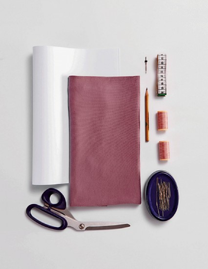 žerzej, 2 špulky nití, dvojitá jehla, metr, tužka, špendlíky, nůžky, papírový střih ke stažení