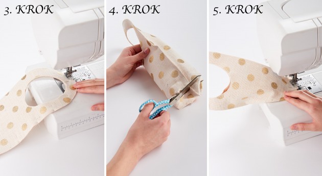 4. KROK: Rohy na dně tašky složte (tak, jak je znázorněno na šabloně) a odstřihněte.