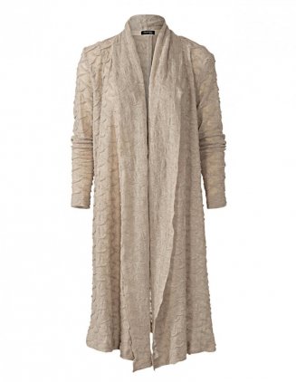 Vše záleží na podání. Důmyslná hra s úpletem vykouzlila delikátní kousek pro společenské i volnočasové okamžiky, který se pyšní nepřehlédnutelným límcem. Ten si díky měkkým liniím a poddajnému materiálu může dovolit oplývat super objemem.