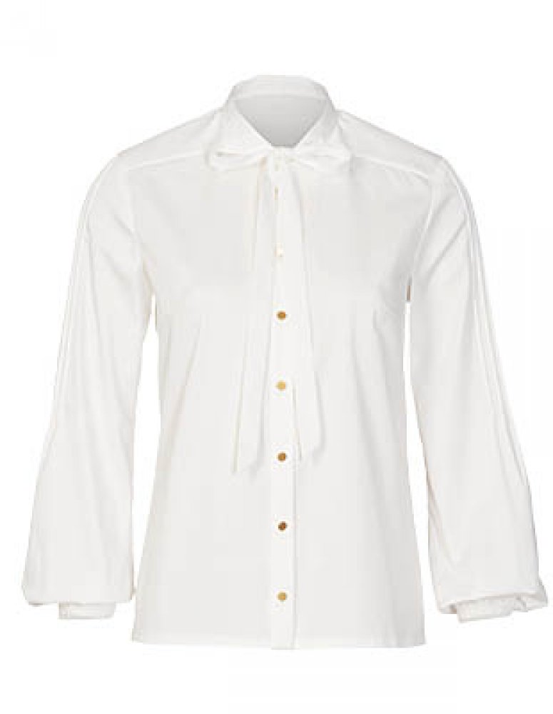Tradiční krejčovina rozhodně není fádní. Vždyť nemusí jít pokaždé o něco převratného, stačí pár zajímavých drobností. Například stojáček postupně přecházející ve vázačky, z nichž se dá udělat mašle, řasení s gumičkami, jež nahradí manžety, či úzké sámky na rukávech – to jsou ty pravé ingredience.