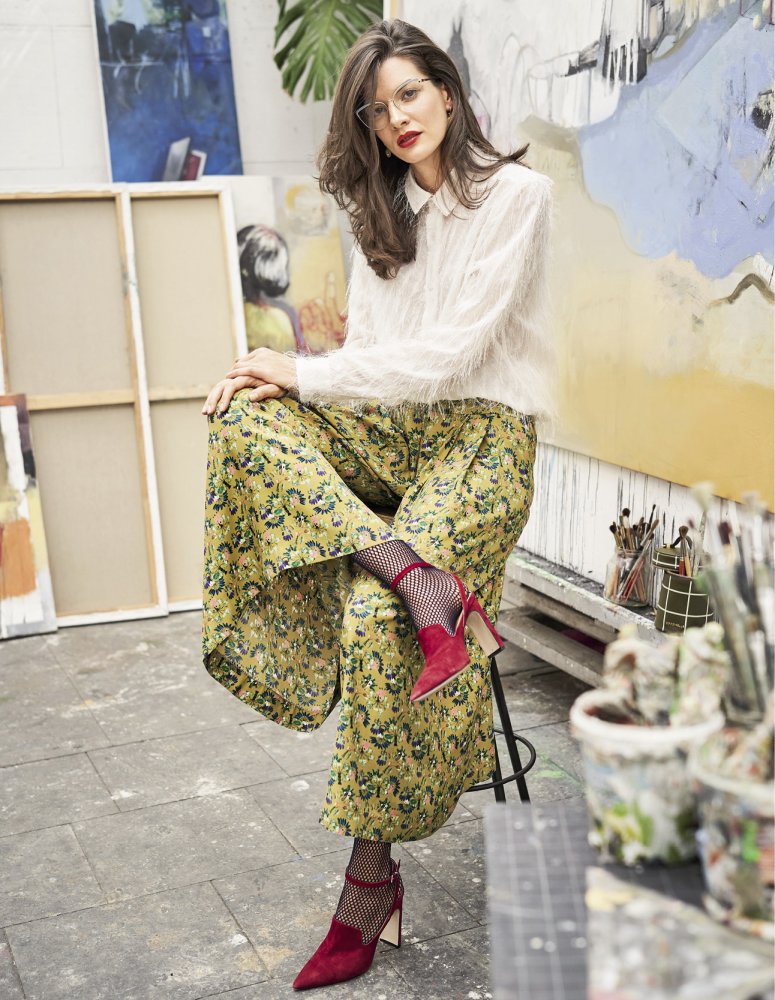 Poddajné látky jsou ideální pro modely sestávající z hodně širokých dílů. Bez odporu podléhají gravitaci a krásně splývají, což dodává kalhotové sukni se záhyby na předních dílech správnou dynamiku.
