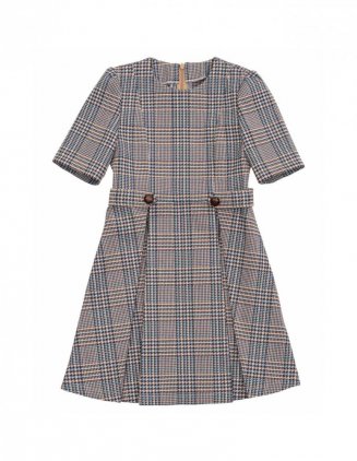 Wow, tomu se říká být très chic! Hluboké protizáhyby na sukýnce a krátké pásky částečně překrývající sesazovací šev dodávají šatičkám správnou formu. S tou bezvadně ladí káro, které hezky kombinuje chladné a pastelové tóny.