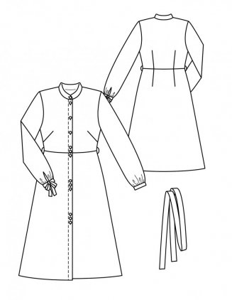 Zdrženlivost živůtku dovoluje šatům umístit spodní trojici knoflíčků na přední liště o něco výš, aby délka rozparku nastolila rovnováhu a dodala jim správnou dávku sex-appealu. Ani vázačka v pase nezahálela a ujala se tvarování atraktivní siluety.