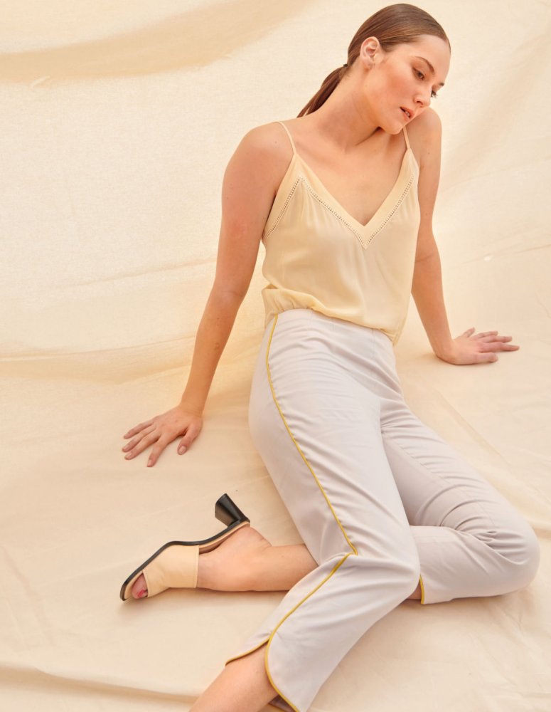 Sedmiosminová délka a poměrně úzké nohavice si žádají pružný materiál, jen tak se budete moci pohybovat zcela svobodně. Strohost kalhot narušují pouze rozparky se zaoblenými okraji, které přispívají k pocitu pohodlí.