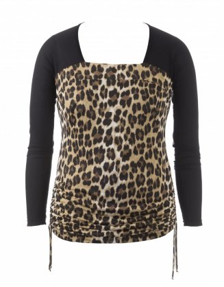 Pochlubte se svými přednostmi a pořiďte si tričko (B) s optikou dva v jednom, které využívá kontrastu materiálů a dokonalých střihových fines. Partie elastického žerzeje vzbuzuje dojem, že jde o korzetový živůtek přes tylovou halenku. Ve skutečnosti se jedná jen o jeden model.