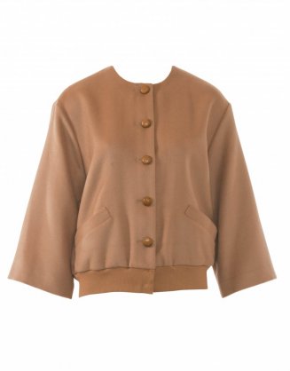 Klasický střih bluzonu nikdy nezklame. Avšak malá inovace není na škodu. Stačí pár drobných detailů, jako jsou široké tříčtvrteční rukávy a kožené knoflíky, které ladí nejen s barvou vlněného veluru, ale i s žebrovým úpletem na pásku.