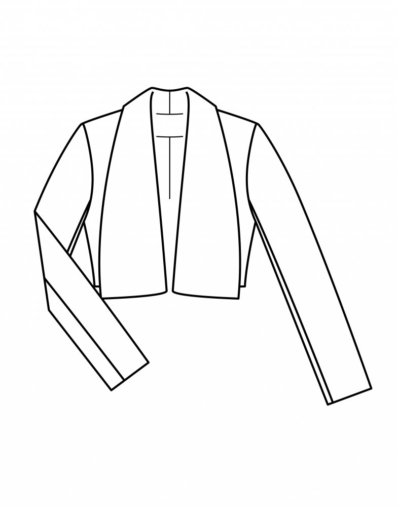 Střih lze použít i na modely Bolerko s dlouhým rukávem (A), Prodloužený kabátek (C) a Splývavý plášť (D).