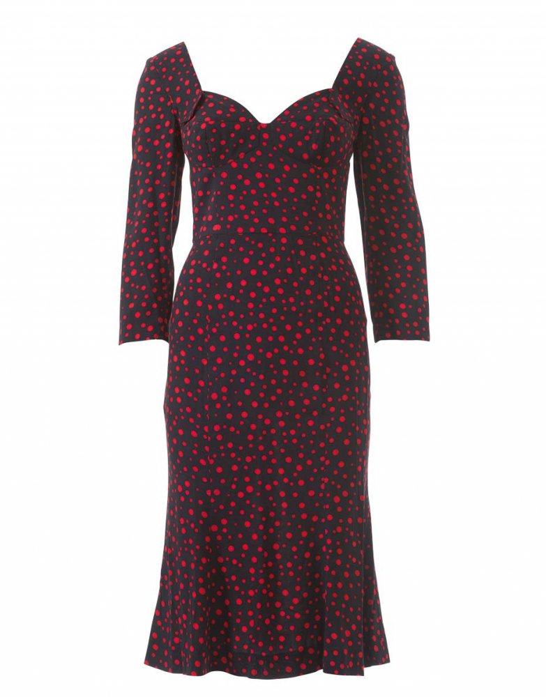 V sexy modelu s korzetovým živůtkem a godetovou sukní se snadno stanete středem pozornosti, a to nejen díky rafinovaným detailům, ale i červenočernému puntíkovému vzoru. Balíček obsahuje i střih na Něžné svatební šaty (A).