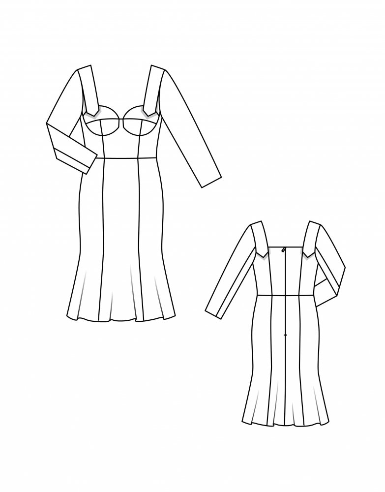 Další materiál: vlizelín G 785; vatelín 248 na podprsenkové díly; 1 „skrytý“ zip dlouhý 60 cm