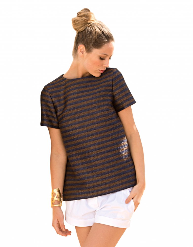 Šortky A: žakárová tkanina, podélně vzorovaná, šíře 150 cm: 0,80 m pro všechny velikosti