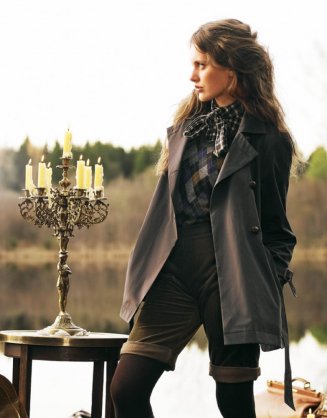 Ležérní trenčkot s raglánovými rukávy a hlubokým protizáhybem na zádech poskytne své nové majitelce volnost a pocit svobody, a to dokonce i v případě, kdy se v pase stáhne vázačkou. Střih lze použít i na model Dlouý trenčkot (B).