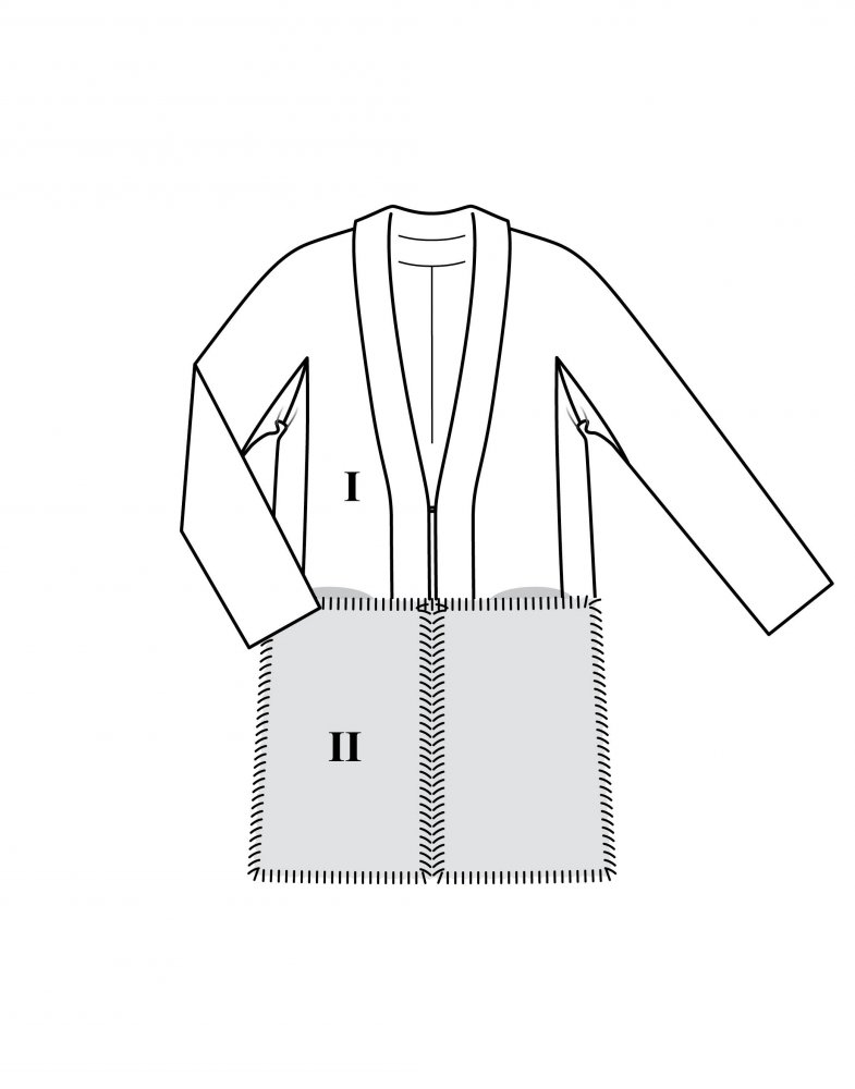 Spotřeba:viz tabulka: oboulícní látka (I); imitace kožešiny (II); podšívkovina; vlizelín G 785; háček a očko; 2 patentky