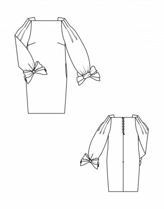 Zčásti zašité záhyby na rukávech lehoučkých hedvábných šatů zvýrazňují rukávové hlavice a podtrhují ležérní vzhled. Směrem k záložce se silueta mírně zužuje a velmi lichotí postavě.