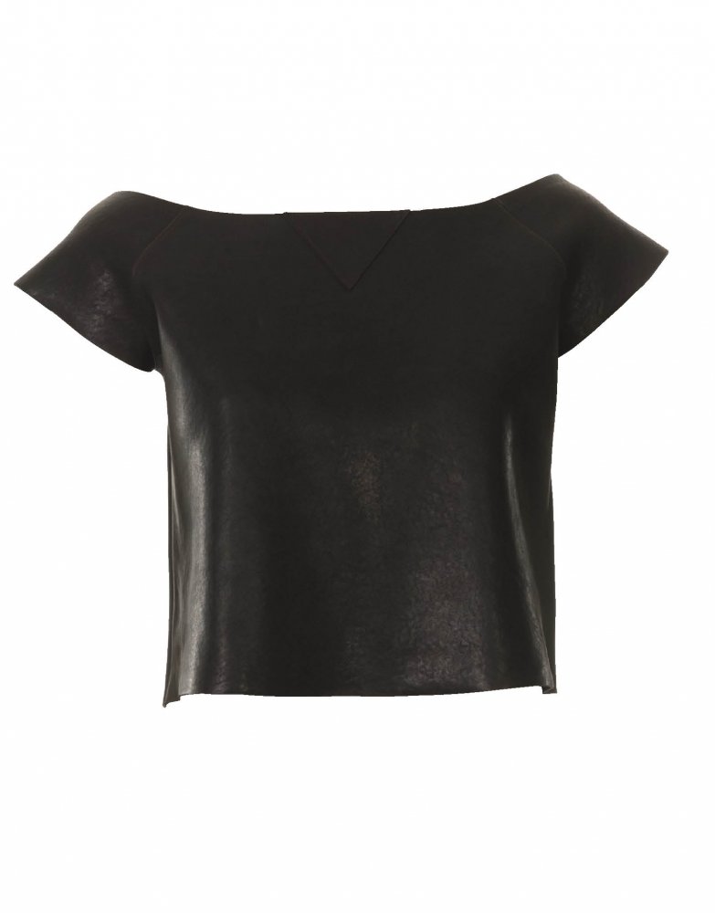 Tričko s krátkými raglánovými rukávky končí už kousek nad pasem a co chybí na délku, je vykompenzováno na šířku. Široké rovné tričko vypadá výborně s tenkým tričkem vespod.